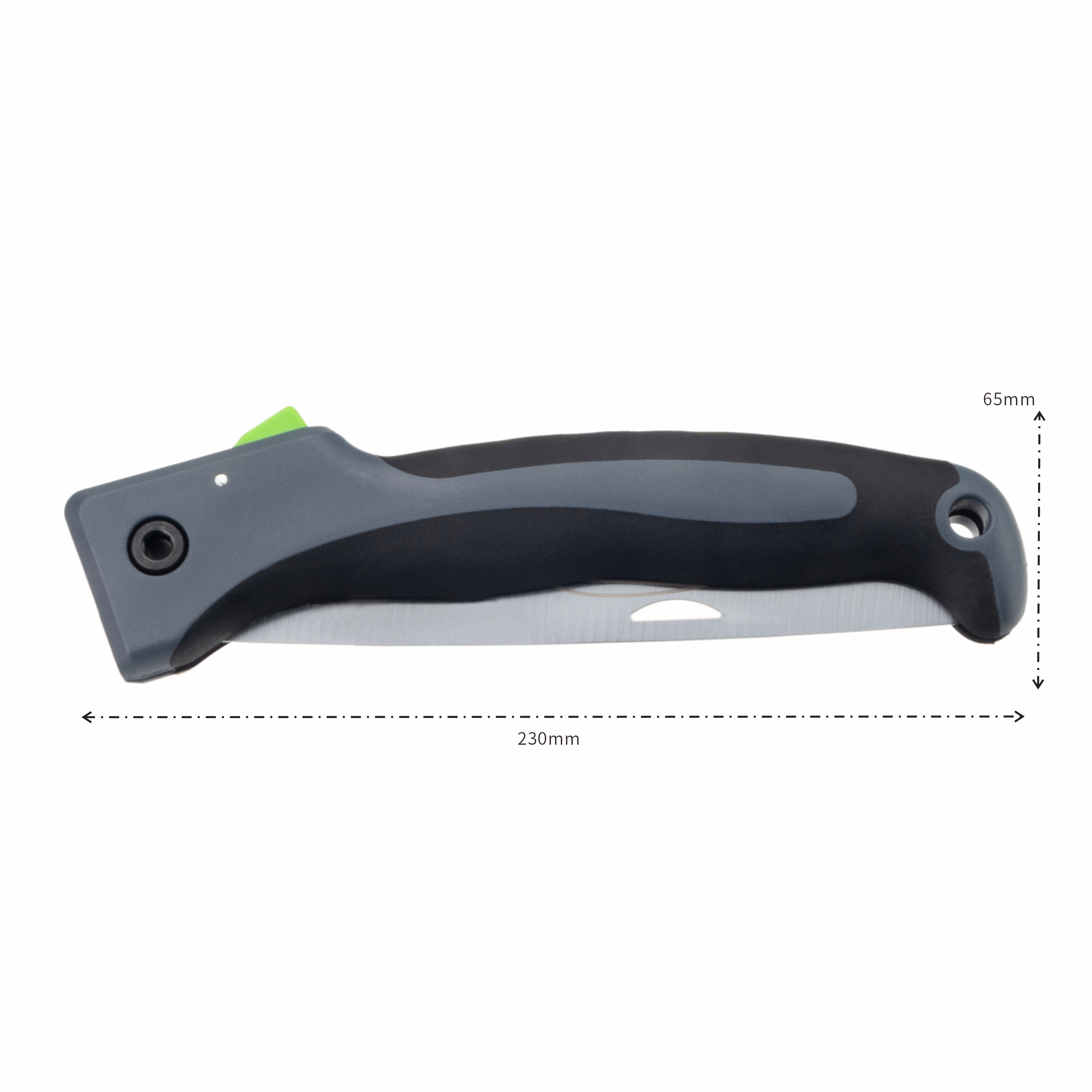 1. SK5 Foldable Blade Triple-cut Teeth; 2. 1mm thickness SK5 hardened blade with fine polishing and high-grade anti-rust oil make it quicker, sharper and smoother when cutting and sawing off wood; 3. Equipped with safety lock, providing safe locking and unlocking system, firmly fix the saw blade in the proper position during use. Blade fixed with strong screw offers a firm support force for exclusion of breaking off when cutting or closing; 4. Rubber handle with anti-skid grip to provide proper control for user in woodworking, ensure appropriate control force in any weather conditions, save effort; 5. Conveniently folds in half and can be easily carried in a pocket.